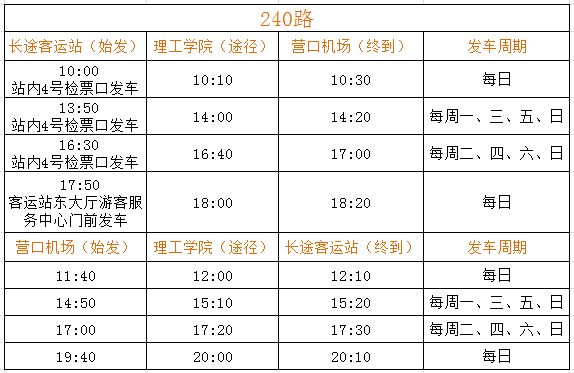 經(jīng)公司營運部門與機場工作人員溝通:從2018年3月25日起,營口藍(lán)旗機場執(zhí)行新的航班時刻表(部分航線停發(fā))。針對上述情況,為方便市民出行,經(jīng)公司研究,現(xiàn)對機場240路運營班次進(jìn)行調(diào)整。具體內(nèi)容如下: