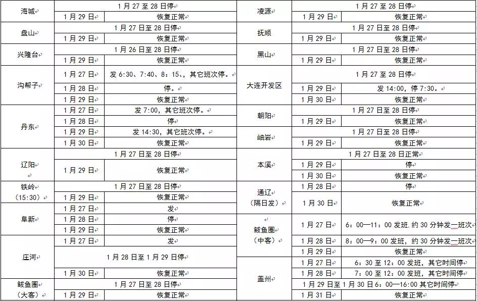 營口交通運(yùn)輸集團(tuán)汽車客運(yùn)站有限公司2017年春節(jié)假期班次安排表